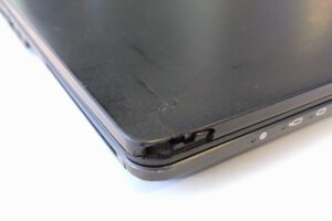 , на корпусе дефект (см. фото), некоторые потертости на экране, которые во время работы не видныНа экране от клавиатуры возникли следы использования, которые видны, если компьютер выключен или картинка равномерно черная. Обычной эксплуатации не мешает.
