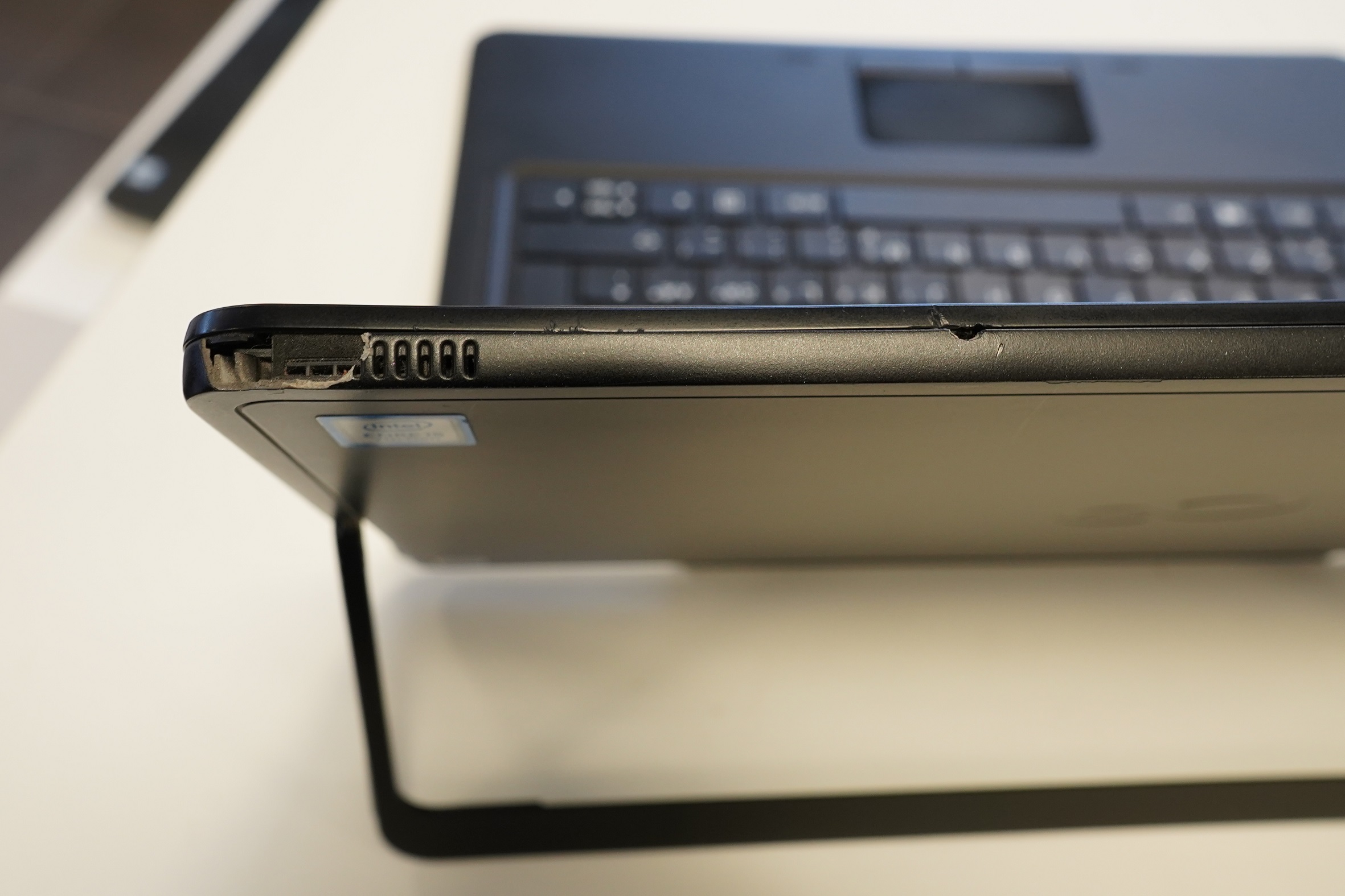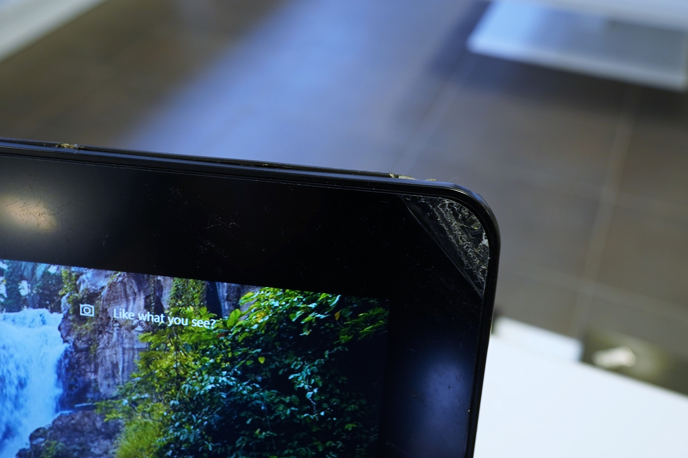 , дефект (см. фото), много маленьких царапин на краю экрана (во время работы малозаметные), следы использованияНа корпусе или клавиатуре устройства несколько небольших царапин, на клавиатуре/тачпаде небольшой "износ"