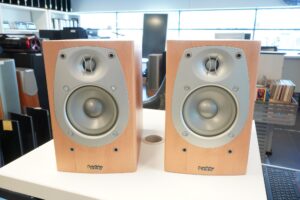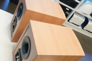 Высокие звуки звучат тише в одном динамике по сравнению с другим.